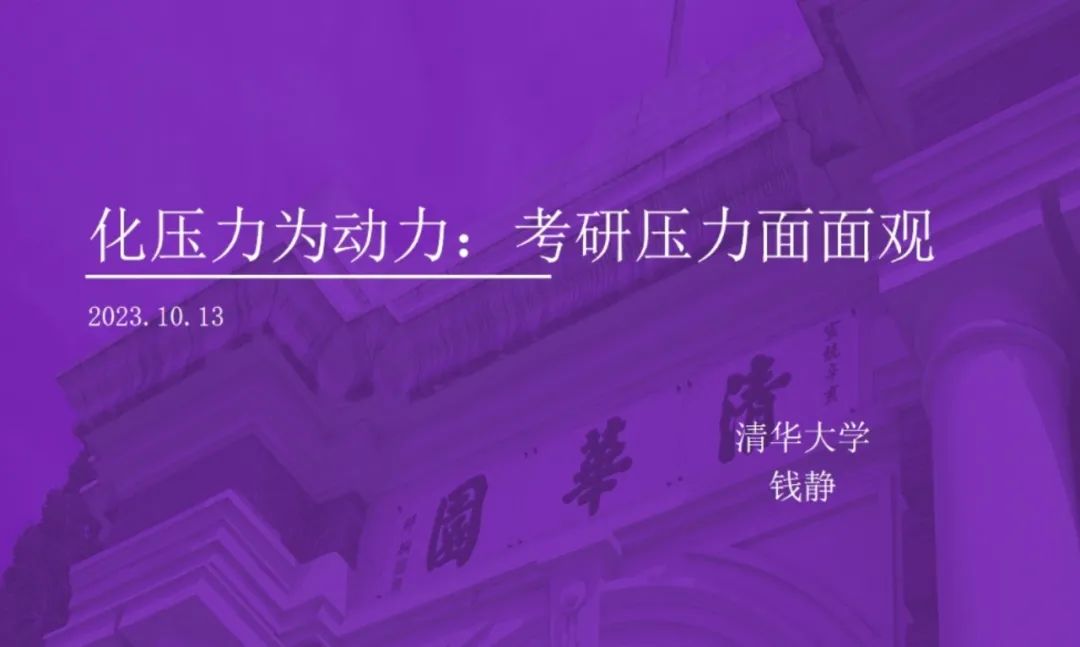 随着考研时间的接近,考研学生的心理压力也越来越大。为帮助考研学生对抗心理压力,缓解紧张情绪,增强备战信心,在十月十世界精神卫生日之际,10月13日下午清华大学社会科学学院心理学系钱静副教授在我校呈贡校区进行了“如何化压力为动力:考研压力面面观”的心理健康讲座。