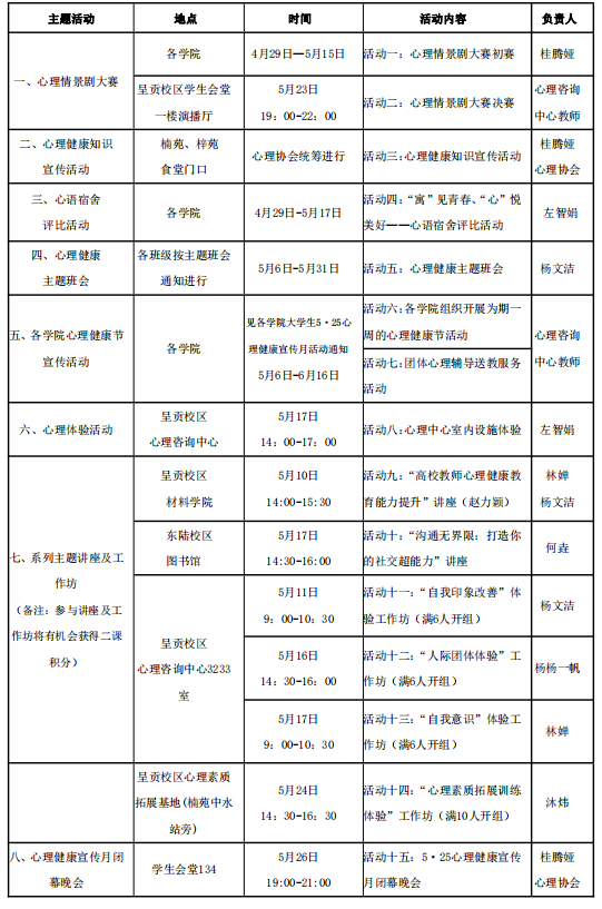 2024年5月17日14:00-17:00;心理健康咨询服务中心(体育学院二楼)