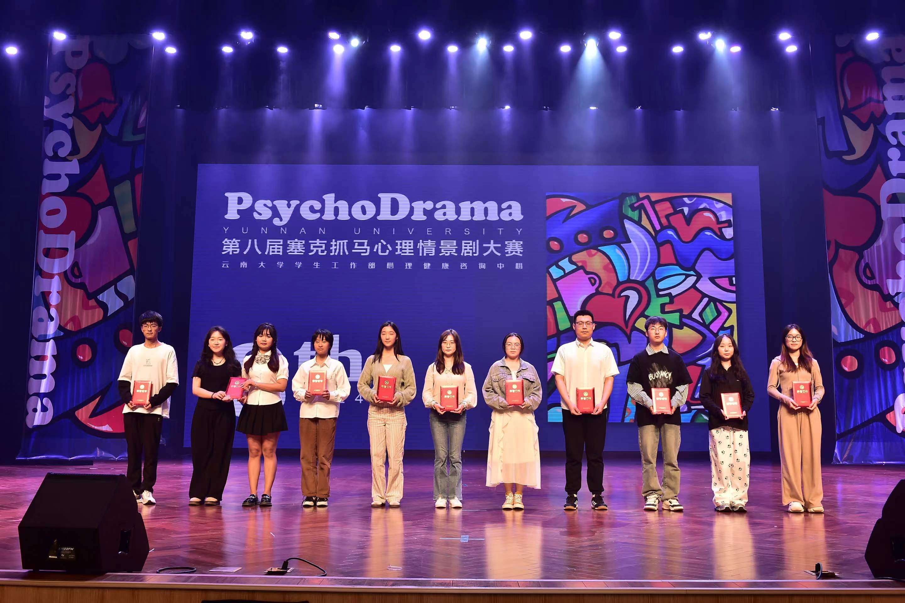 2024年5月26日晚上七点,心理协会在学生会堂134举办了“云南大学2024年‘5·25’心理健康宣传教育月闭幕晚会”。晚会中表演节目形式多样,晚会节目由云南大学慕音配音社、魔方社、街舞社、心理协会及部分学院的同学自愿组织展示,以不同方式向观众展示当代大学生常见的心理困扰,以及应对方法与技巧,同学们在享受视听盛宴的同时也获得心灵的感悟与成长,增强了心理健康意识,提升了心理健康水平。