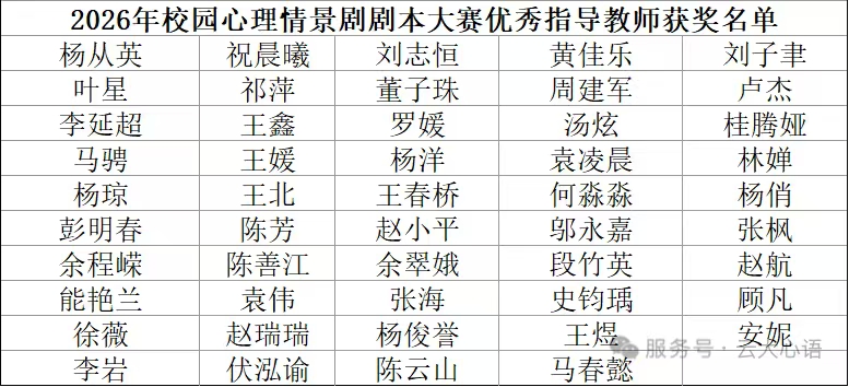 为落实“健康第一”理念,建设健康校园,增强心理健康教育的实效,全云南大学学生处心理健康教育咨询中心于3月3日-13日举办2026年校园心理情景剧剧本大赛。