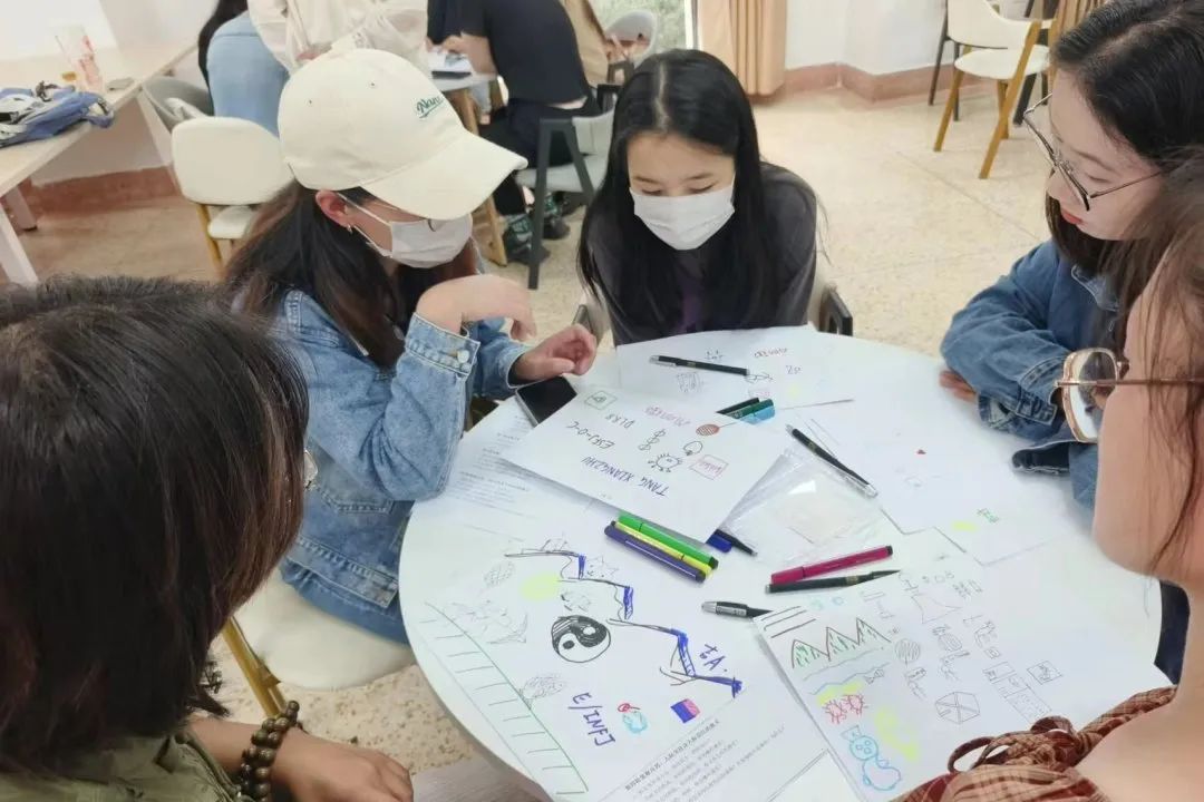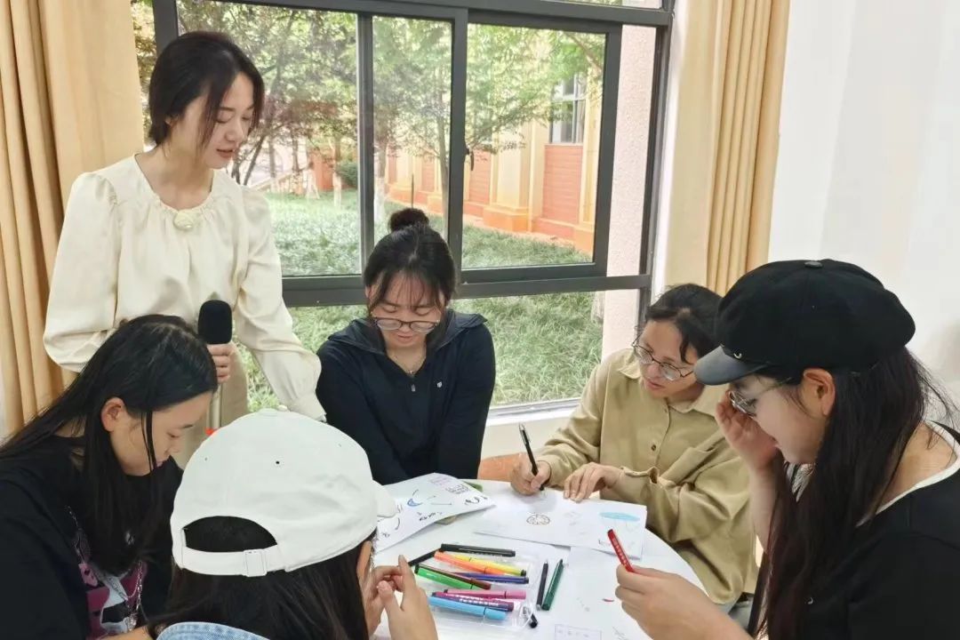 首轮,同学们通过绘画进行自我介绍。与平时进行口头的自我介绍不同,此次活动要求同学们用画笔表达自己的内心世界。在8-10分钟的思考时间过后,同学们纷纷在小组内分享了自己的作品,通过绘画这一独特的交流方式,增进了彼此的了解。